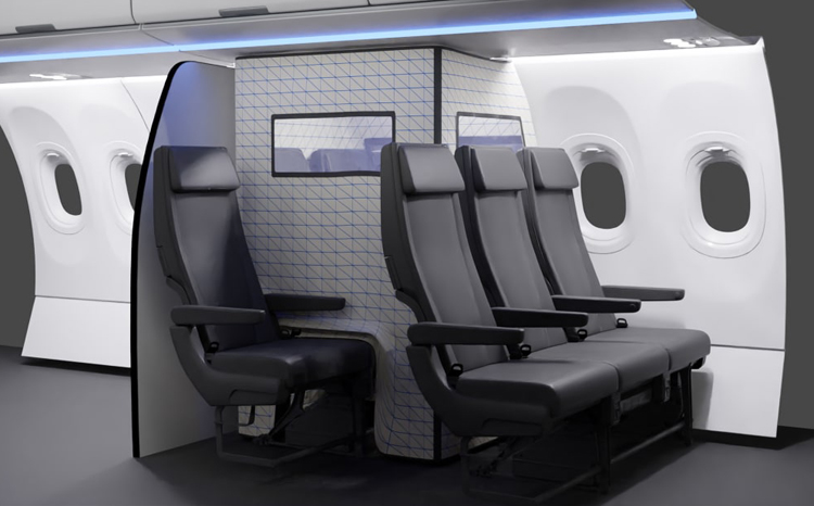 Do vậy, Airbus đã tạo ra PaxCASE-tấm nhựa nửa trong suốt bao quanh khách hàng nghi ngờ mắc COVID-19.